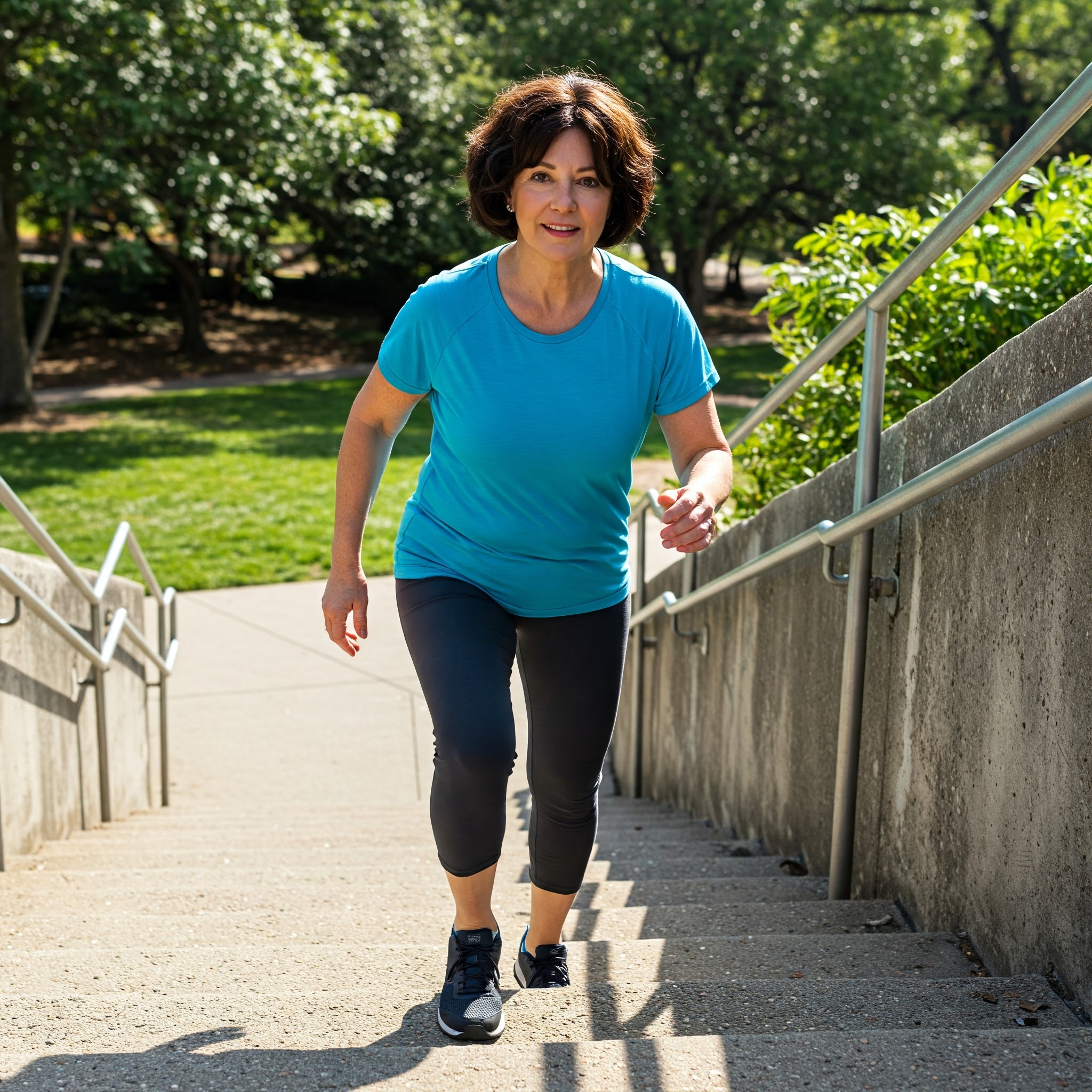 계단을 오르면서 자연스럽게 허벅지, 엉덩이, 종아리 등 하체 근육이 강화됩니다. 특히 대퇴사두근과 둔근이 활성화되어 탄탄한 하체 라인을 만드는 데 효과적입니다. - 1.2 고강도 유산소 효과
